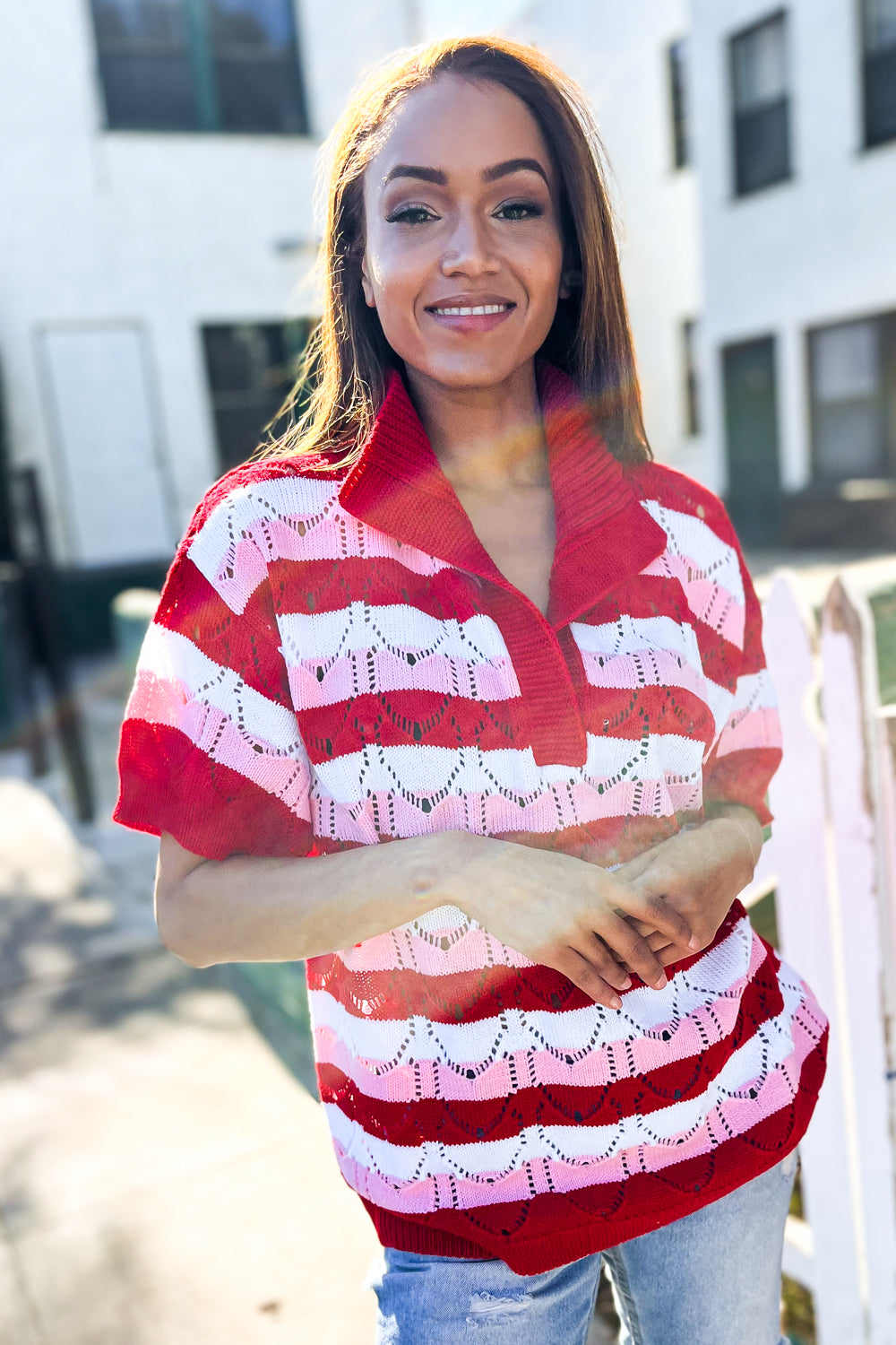 Pick Up - Game Day Ready Pointelle Collared Notch Neck Sweater